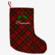 Jul Red tartan plaid holly twig Anpassningsbar tex Liten Julstrumpa