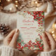 En festlig julinbjudan med klara röda vinterbär, frostigt gröna gräs och subtila gyllene accenter. Den elegant vattenfärgsdesignen blandar säsong-värme med en aning rustisk charm, perfekt för att samla vänner och familj under helgdagarna. Anpassa texten så att den blir unik.