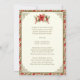 Vår jul födelsedagsinbjudan för att fira Jesu födelse har en vacker vintagebild av julkrubban med röda julstjärnor och guldbelysta hörnkanter. På baksidan finns texten till "Änglar sjunga" All text och typsnitt kan ändras.