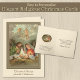 Det här vackra julkortet har en vacker personlig jul traditionell katolsk religiös vintagebild på Jungfru Maria, S:t Josef och änglar som betraktar Kristusbarnet när han ligger i krubban. All text och teckensnitt kan ändras.