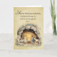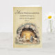 Detta vördnadsfulla julkort fångar förundran och enkelheten från den första julnatten. Framsidan visar en rustik utomhusscen med Maria, Josef och lilla Jesus omgivna av djur, vars ljus faller mjukt under en stjärnbeströdd himmel. Skriftordet påminner oss om det gudomliga miraklet med Gud hos oss. Perfekt för dem som har julens berättelse nära hjärtat, förmedlar detta kort ett budskap om helig förundran, fred och nåd för en välsignad jul.