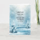 En vacker vintermiljö med snötäckta tallar och solstrålar med ett kristet budskap på detta religiöst julkort.
