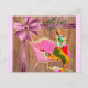 En lycklig-kvinna på 1950-talet på en rosa-brocadsoffa, presenter och ett stort band på lilan. Tack till en fantastisk-artist!