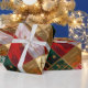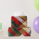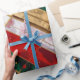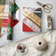 Kort färgad rosett band av rött, guld, vitt och grönt som en papper julomslutning.