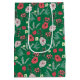 Söt, handdragna jultomor och bär från ro är en dold amazon grönt mönster, med en samling röd ros, rosa ros, röda bär, grå grönt löv, gräs och liten gula blommor julblommigt, häpnadsväckande grönt. Ett exempel på jultema i trendiget mode och färg, en söt helgdagar under vintern.