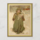 En vintage av en ung flicka som är vackert klädd för en snödag, vinterdag och med en spray av vit ros.