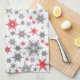Jul, rött, vitt, snöflingor, vinter, nytt år kökshandduk