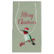 Klar julklapp med en ruby-throated hummingbird som bär en julhatt.