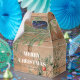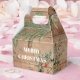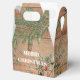 Bakgrund av rustiskt trä med barrträd och julbär vid "God jul" i ord. En vacker land lada-design i Julafton-temat, perfekt för juldekaler i skogar.