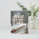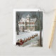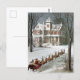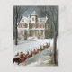 Vintageillustration från den viktorianska eran med julmotiv med en gammaldags tomte framför ett hus med släde och renar på julafton