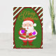 Detta handritade julkort har en jovial tomte med kakor och kakao, inramad i ränder av sockerrör och mysiga högtidsfärger. Anpassa botten med ett familjenamn eller företagsnamn för att göra det till ditt eget. Bra som present till tonåringar eller som personlig julpost.