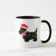 Skotska Terrier-hundälskare kommer att njuta av denna festliga, svarta skotska Hund som bär en julhatt, röd och vit strimlad scarf och färglös sträng ljus! Gå in i julstämningen med den här roliga designen på anpassningsbar mugg!