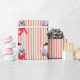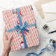 Denna förtjusande lite svartvita Shih Tzu hund som ha på sig hans jultomtenhatt och ett ljust rött band runt om hans nacke är all uppsättning som ska önskas att någon som är speciellt en lycklig helgdag på denna färgrika djurälskare avbildar. Bakgrunden är röda och vitrandar.