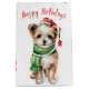 Vattenfärgen Shih Tzu på en vintersjal, hatt och snöflingor. Text kan redigeras.