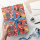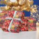 Ett skott av en jul under en Julgran med rött present är ljust och färglöst i Hutchinson Kansas USA. Det är på Wrapping Papper som är ljust och färglöst.