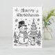 Personlig julkort med en söt snöman och julgran på en vinterlig snöig dag. På baksidan kan du anpassa din julhälsning och lägga till din familjs namn. Skicka dessa unika julkort i år!
