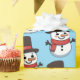 Jul snemann omslags papper med en söt tecknad teckning av en bedårande snö man som bär en topp hatt och en röd halsduk. Han har en morot för näsa kol för ögon och knappar, kvistar för armar och en stor glad leende. Detta söta högtidliga mönster är på en blekblå bakgrund.