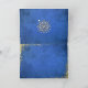 Det här hälsningskortet har tre guld snöflingor prickade med tydliga rinestoner på blå botten. En sockerdamm från guld glitter ramar. Insidan av kortets framsida har samma blå färg. Toppen har en snöflinga och grund har två hörn som dammats med guld. Kortets baksida har också en snöflinga. Välj "Anpassa detta" om du vill ta bort eller ändra något av inslag till kostym.