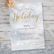En modern inbjudan till julfesten på kontoret som innehåller nedfallande snöflingor på snöbakgrund med en julklapp i hälsning i elegant i en skripttext från guld. Anpassa genom att lägga till information om företaget namn och företaget party firande. Designad av Thisisnotme©