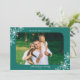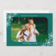 Det här enkla fotojulkortet ger ett vågrät bild accentuerat med rundade hörn. Utformningen har vit snöflingor på en mörk teal bakgrund.