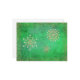 Detta vykort har tre guld snöflingor prickat med tydliga nosoner som är kapslade på gröntens bakgrund. En sockerdamm från guld glitter ramar.