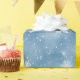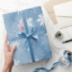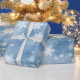 Vita och silver snöflingor faller på blå himmel i vintagen vintern under våtmarksfärgen som bara är höger för att helgdag i eleganten ska vara papper. Det är ett trevligt mönster som har en ljusblå bakgrund, som representerar ett tidigt kvällssnö himmel, med moln som går förbi.