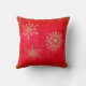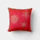 Tre guld-snöflingor med tydliga noshörningar är kapslade mot en röd bakgrund. En ram av guld glitter stoft ramar. De här kuddarna skulle se jättebra ut med din juldekoration eller någon som vill ha en liten bit av slips för helgdagarna.