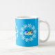 Bild av snögubbar på en snöflinga och blå bakgrund.