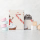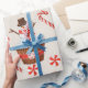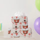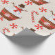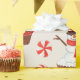 Vår skrypta julklapp i Snögubbe Chocolate Cupkaka innehåller vattenfärgade illustrationer av chokladkakor med vit frost och en jolly marshmallow Snögubbe överst omgiven av rött och vitt peppermint rand-godis på en neutralt beige bakgrund.