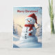 En festlig vinterscen som visar en glad snögubbe i en röd hatt och scarf. Önska någon god jul med ett fint snögubbe-kort.