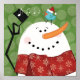 © Veronique Charron / Vild Apple. Den här bilden har en julklapp på snögubbe med grönt. Han gungar en blå fågel som bär på en Jultomten hatt.