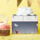 Snögubbe med guld stjärnornas dekoration för gräs träd på vintertid skogen med fågel.