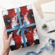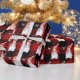 Helgdag med en fågel i snöflingor på en röd och svart buffel la mönster.