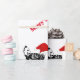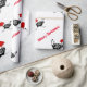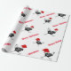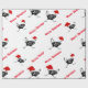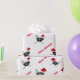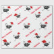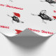 Julen som slår in papper, visas med en rolig grupp av svartvita hönor som är rinnande runt om att ha på sig [på något sätt] röda Santa hattar. Utskrivavet på över vitbakgrund.