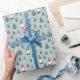 Julsömlöst mönster med gnomer, julgranar, snögubbar på blå bakgrund för vintertid, julklappar och dekoration för nya år, perfekt för papper inslagning, formgivning av festligheter, säsong väv.
