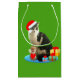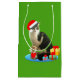 Söt presentpåse med en jul söt katt. Denna söta Tabby Mackerel lilla katt sitter nära ängel och presenter
