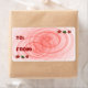 Anpassadets julklapp med blandad mediedesign med en röd spiral-grå bakgrund och digitala konststjärnor. Du kan ta bort text från mallblocket så att du bara har bakgrunden och du kan skriva ut information på etiketten från din hemskrivare eller manuellt på skrivan på etiketterna. Du kan ändra vad som finns i mallblocket eller klicka på "Anpassa" för att välja det teckensnitt som du vill använda stil, storlekt och färg.