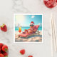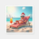 En viskös stjärnfisk med Jultomten-hatt-bikini och solglasögon på en strandstol vid havet med en uppfriskande cocktail