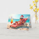 En vidrig stjärnfisk med en Jultomten-hatt och solglasögon loger på en strandstol vid havet och njuter av en uppfriskande cocktail. Text kan ändras.