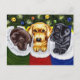 Tre söta, lilla labrador Retriever-valpar, svart brun och gult, instoppade i julstrumpor. Vilken underbar julöverraskning!