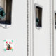 Jul tabby katt med liten ängel och gåvor på vit bakgrundsmagnet. Perfekt för alla under julsäsongen. Text kan vara personlig.