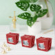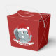 Röda julklapp med en illustration av en söt elefant med rött tomteskål; underbar dekoration för julklappar, redigerbar malldesign med anpassningsbar fält för egen helgdagar, illustrerad av Radka Kavalcova