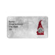En söt jul tomte. Bakgrunden är ett silverfärgat bokeh-mönster.