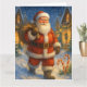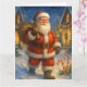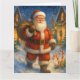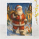Skicka tidlös julglädje med detta vackert illustrerade julkort med Tomten som går genom en snötäckt by. Med lysande kransprydda hem, lätt fallande snö och festliga godisbitar vid hans fötter, fångar denna design julkvällens magi. Perfekt för dem som värdesätter klassiska jultraditioner, frammanar detta kort värme, nostalgi och glädjen av att ge.