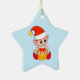 Söt jul tomte som håller en presentlåda på ljusblå Keramisk Juldekoration.