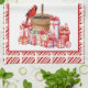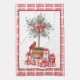 Kökshandduk med färgad julklapp med kardinal och Julklapp vid botten.