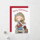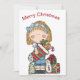 Jul Träsdocka som håller en julstrumpa Högtid Julkort