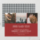 Meddela om din senaste förlovning med detta röda "Hon sa ja!" julkort med tre av dina förlovningsfoton. Anpassa mallen med dina foton (beskära till en fyrkant innan du laddar upp för bästa resultat). Framsidan av detta firande julkort för förlovningar lyder - Hon sa ja! Vi önskar familj och vänner en God Jul och ett lyckligt och hälsosamt nytt år. Anpassa kortets nedre del med era namn. Baksidan har ett svart och vitt buffelmönster. Kontakta mig via knappen nedan om du behöver hjälp eller ytterligare anpassning.