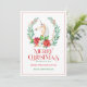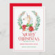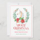 God Jul elegant typografi i rött med jul poinsettia och enhörning huvud krans modern vattenfärg design.