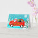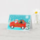 Tomte ut med sin express leverans lastbil lastad med gåvor och hund sittande. En perfekt gåva för någon som älskar hundar.